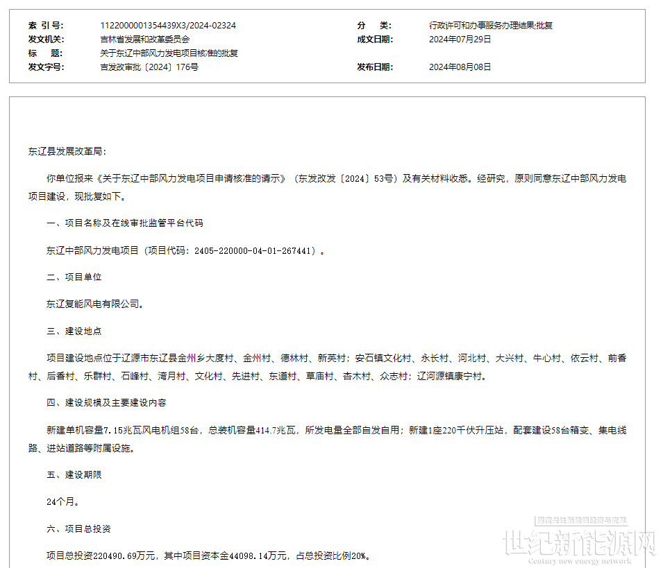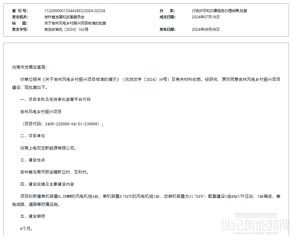 8月8日,吉林省發(fā)改委核準(zhǔn)批復(fù)13個(gè)風(fēng)電項(xiàng)目,規(guī)模共計(jì)2951MW,總投資151.6億元。