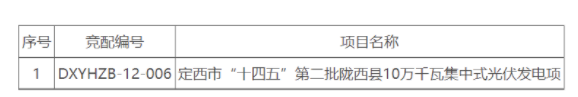 定西市“十四五”第二批隴西縣10萬千瓦集中式光伏發(fā)電競爭性配置公告