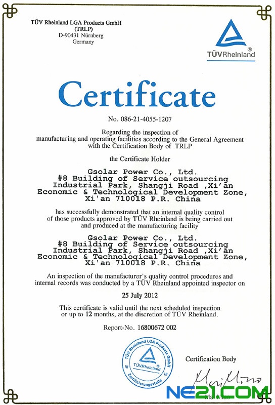 陜西眾森電能科技有限公司多年來一直置身于客戶的角度,秉承“誠信經(jīng)營、技術(shù)領(lǐng)先、精益求精、合作共贏”的理念,不斷進(jìn)行產(chǎn)品技術(shù)更新。是國內(nèi)唯一同時擁有TUV/CE認(rèn)證的設(shè)備廠家。早在2008年,眾森的IV測試設(shè)備就率先取得了CE認(rèn)證,2009年又取得了TUV認(rèn)證,2012年取得臺灣工研院AAA認(rèn)證, EL檢測儀在2011年也取得了TUV證書和專利證書??蛻舾采w德國、意大利、法國、日本、臺灣、美國等多個發(fā)達(dá)國家。