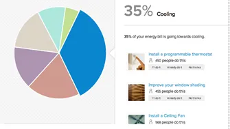 Opower通過(guò)自己的云平臺(tái)和數(shù)據(jù)整合能力來(lái)處理它所服務(wù)的公用事業(yè)公司取得的大量家庭能耗數(shù)據(jù),結(jié)合“行為科學(xué)理論”、房齡信息、周邊天氣等, 運(yùn)用自己的軟件系統(tǒng)進(jìn)行用能分析,簡(jiǎn)歷家庭耗能檔案,并通過(guò)綜合分析提出節(jié)能建議。最吸引用戶(hù)眼球的地方是,Opower提供的報(bào)告里,除了用戶(hù)本身的用電數(shù)據(jù),還有相近區(qū)域內(nèi)最節(jié)能的20%的用戶(hù)耗能數(shù)據(jù),也就是所謂的“鄰里用電比較”,這提供給用戶(hù)非常直觀的節(jié)能動(dòng)力。
